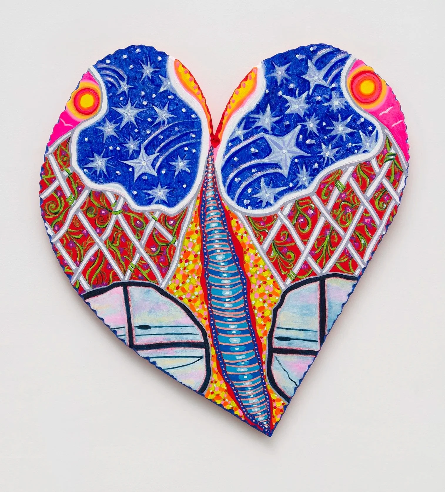 Kati Gegenheimer's paintings are devoted expressions of love, luck, and time and draw inspiration from art history, architecture, popular culture, and craft. Her works embrace the decorative and diaristic, each an altar to a moment that is fleeting. Reliant formally on color, tempo, and composition, each of her paintings are a sign, symbol, and record all at once.